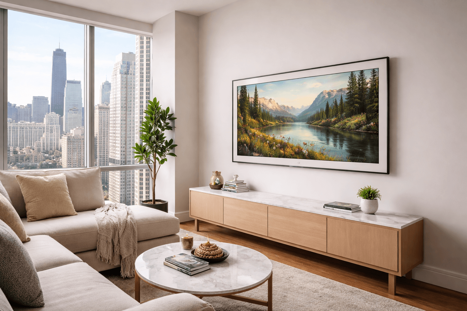 At Chicago Mounting, the Samsung Frame TV has been our most installed TV of the year. We’ve mounted Frame TVs in high-rise condos, single-family homes, lofts, and historic Chicago properties—each with its own challenges.